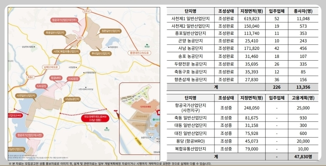 사천시 내 산업단지 가동 중(9개), 조성 중(6개),