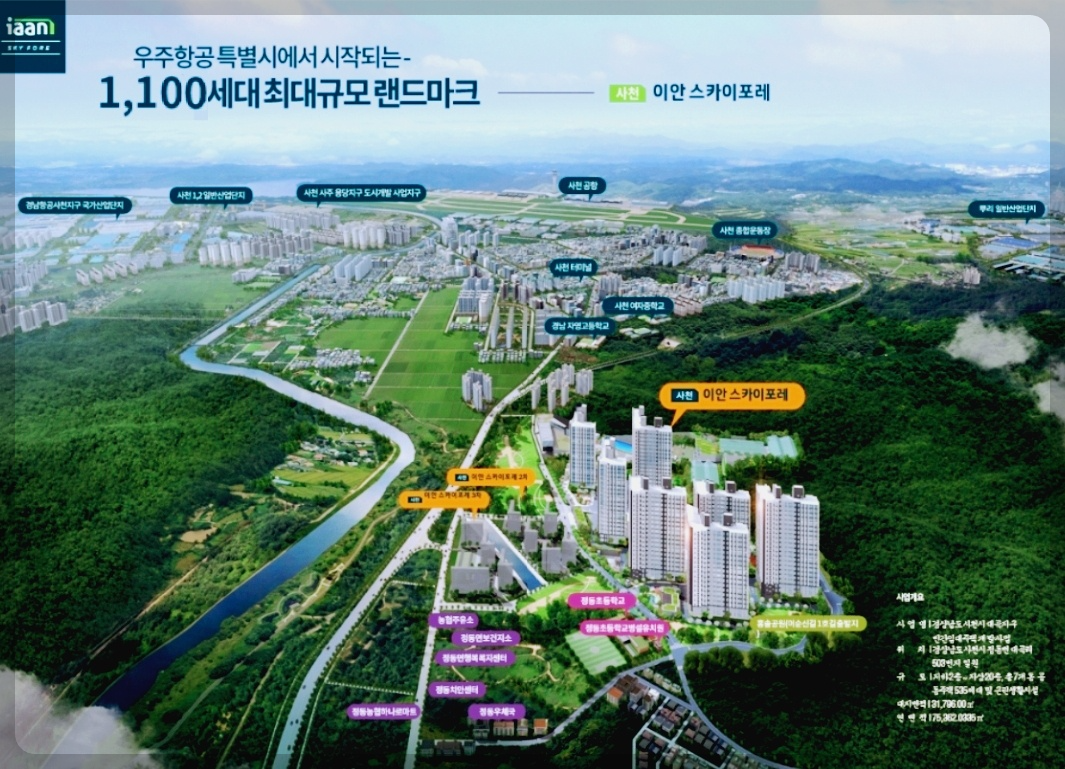안녕하세요. 사천시 신규 공급 민간임대 아파트 정보를 전해드리는 박부장입니다. 오늘은 사천시 정동면 대곡리 일원 사천 대곡지구 내에 들어서는 "사천 이안 스카이포레" 신규 공급 대단지 10년 전세 분양전환형 민간임대 아파트를 소개해 드리겠습니다.