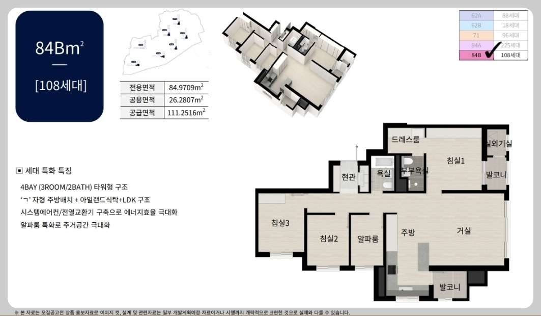 주택형 : 62㎡ A·B, 71㎡, 84㎡ A·B / 5가지 타입